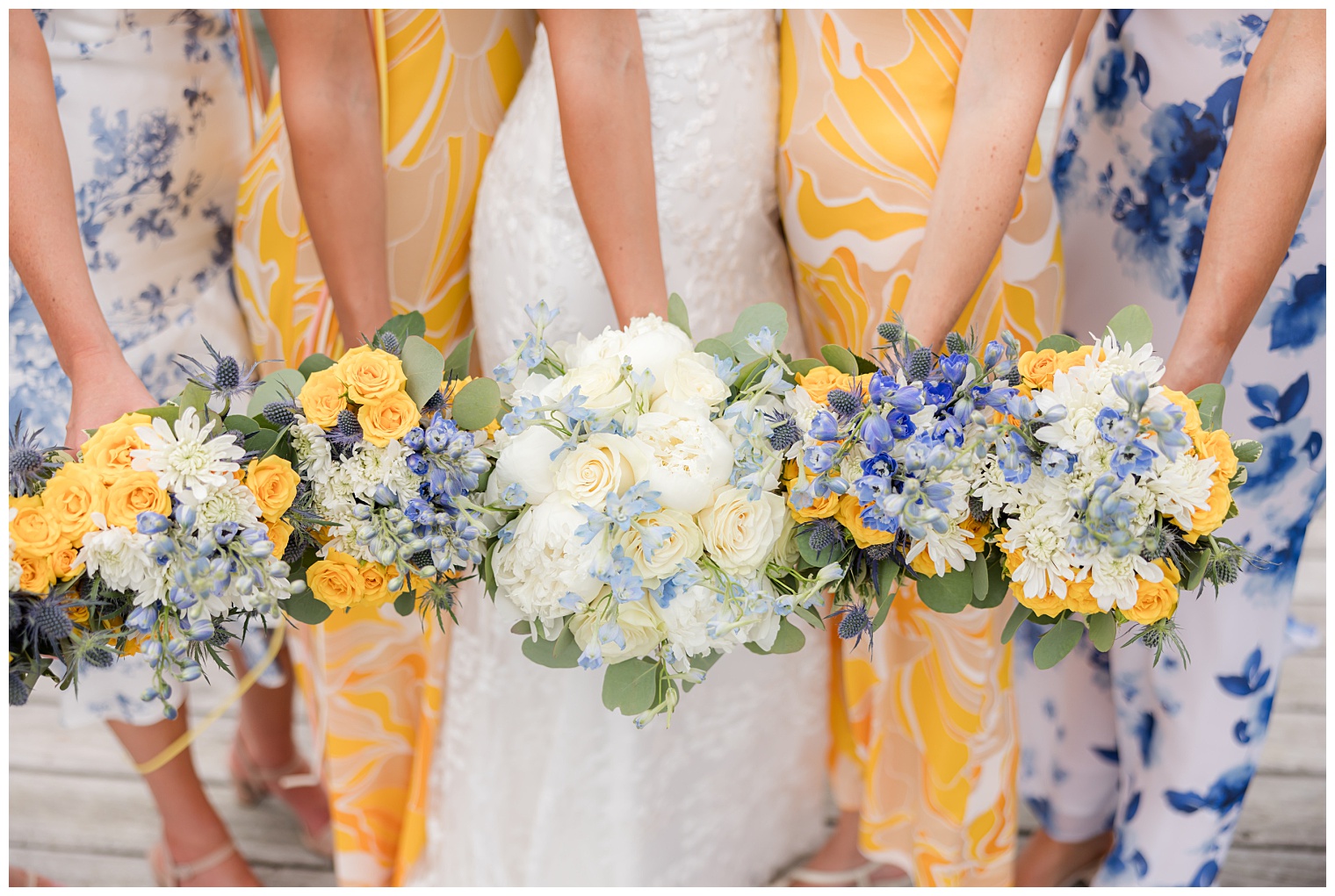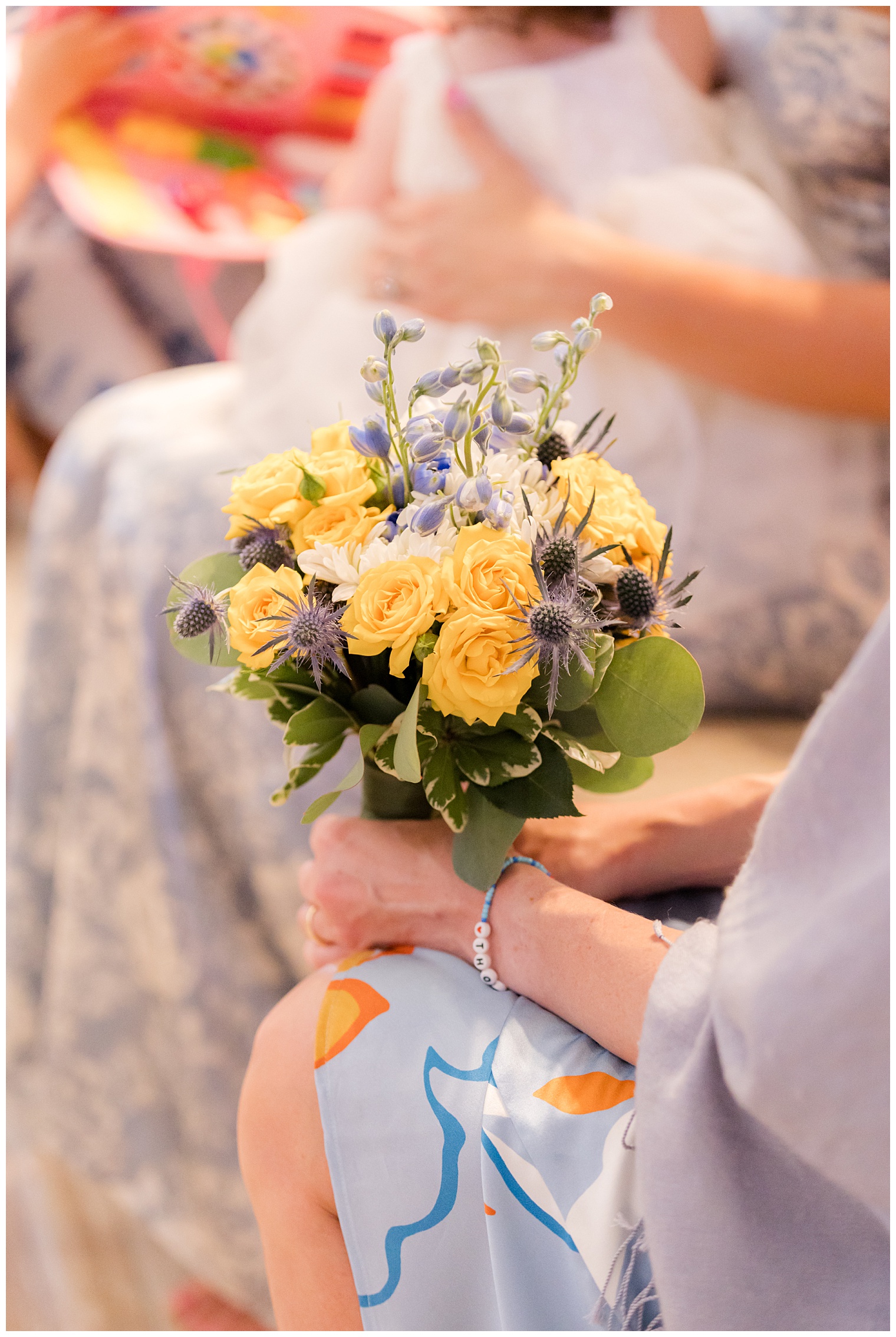 Drawing inspiration from the feeling of an intimate dinner party, Grace and Matt intentionally crafted a celebration that felt natural, heartfelt, and uniquely them. Instead of focusing on formalities, they filled the day with real moments, candid laughter, meaningful conversations, and warm connections. The yellow and blue color palette brought a fresh, coastal feel to the celebration, beautifully complementing the venue’s nautical charm.